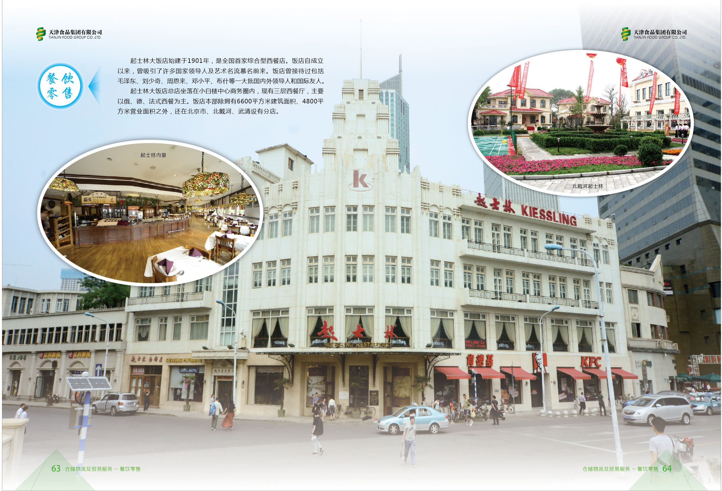 The Kiessling Hotel was built in 1901. It is the first Western restaurant with comprehensive services in China. Headquartered in the center of the Xiaobailou business circle, it mainly serves Russian, German and French cuisine.