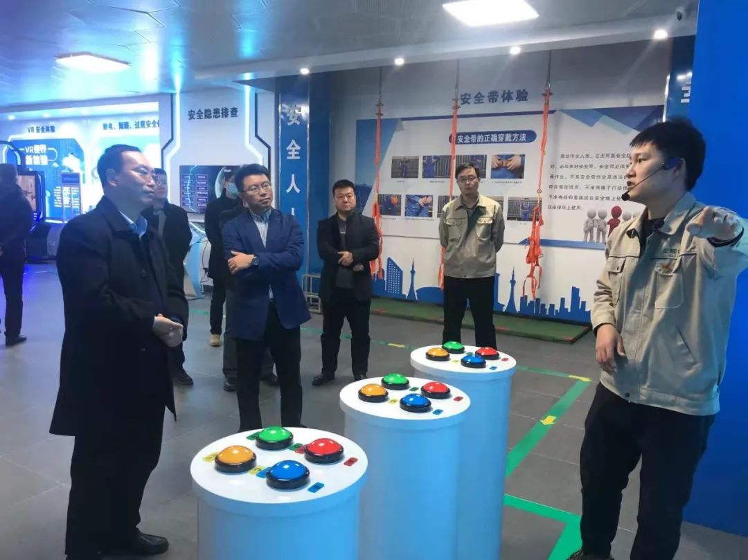 儀式結(jié)束后,首期培訓(xùn)班學(xué)員進(jìn)入多媒體宣教室進(jìn)行消防安全知識學(xué)習(xí)。與會領(lǐng)導(dǎo)對安全培訓(xùn)體驗中心各模塊的組成、體驗?zāi)康?、體驗效果等逐一進(jìn)行了了解,并對VR安全體驗、電力安全體驗等模塊進(jìn)行了體驗,對大數(shù)據(jù)中心展現(xiàn)的智慧工地、電站智能運(yùn)維系統(tǒng)等一系列模塊表示高度贊揚(yáng),并現(xiàn)場通過指揮調(diào)度平臺對房地產(chǎn)公司下屬單位進(jìn)行了指揮連線。