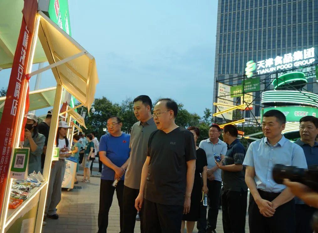 6月24日,由天津市政建設(shè)集團聯(lián)合天津食品集團、天津旅游集團、北方國際集團共同打造的梅江南城市主題文化美食市集在梅江南文化健康產(chǎn)業(yè)商務(wù)街區(qū)正式啟幕。食品集團精心打造的“天食城市綠洲”主題活動再次亮相,為梅江南整體市集活動助力、添彩。市國資委黨委書記、主任張勇來到集團展位視察指導,集團黨委書記、董事長萬守朋與各兄弟集團領(lǐng)導陪同巡視市集情況。