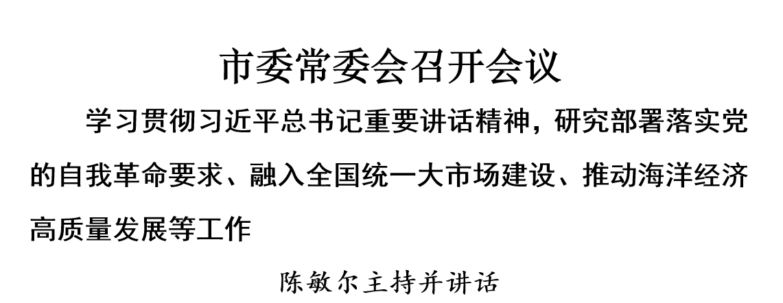 會(huì)議強(qiáng)調(diào),要認(rèn)真領(lǐng)會(huì)習(xí)近平總書記在中央財(cái)經(jīng)委員會(huì)第六次會(huì)議上的重要講話精神,與深學(xué)深用習(xí)近平經(jīng)濟(jì)思想結(jié)合起來(lái),牢牢把握縱深推進(jìn)全國(guó)統(tǒng)一大市場(chǎng)建設(shè)“五統(tǒng)一、一開放”的基本要求,自覺在大局下想問(wèn)題、做工作,持續(xù)深化要素市場(chǎng)化改革,推進(jìn)市場(chǎng)制度統(tǒng)一、設(shè)施聯(lián)通、監(jiān)管一致,著力推動(dòng)內(nèi)外貿(mào)一體化發(fā)展,積極參與全國(guó)統(tǒng)一大市場(chǎng)建設(shè)。要牢牢把握推動(dòng)海洋經(jīng)濟(jì)高質(zhì)量發(fā)展的重要要求,提升向海開放、向海發(fā)展能力,科學(xué)編制我市海洋經(jīng)濟(jì)發(fā)展“十五五”規(guī)劃,爭(zhēng)取更多海洋戰(zhàn)略科技力量布局天津,充分發(fā)揮天津港的優(yōu)勢(shì)和作用,大力發(fā)展港航服務(wù)業(yè),做大做強(qiáng)臨港產(chǎn)業(yè)、適港產(chǎn)業(yè),加強(qiáng)海洋生態(tài)保護(hù)修復(fù),深入推進(jìn)港產(chǎn)城融合發(fā)展,打造我國(guó)北方地區(qū)聯(lián)通國(guó)內(nèi)國(guó)際雙循環(huán)的重要戰(zhàn)略支點(diǎn)。