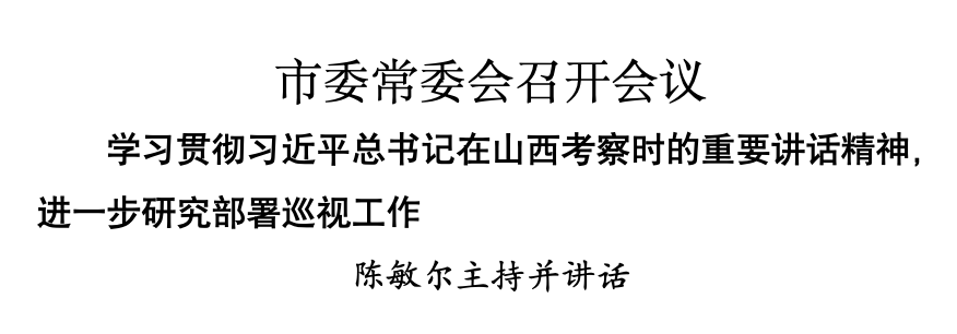 本報訊(記者 于春灃 劉國棟)7月13日,市委常委會召開會議,學(xué)習(xí)貫徹習(xí)近平總書記在山西考察時的重要講話精神,進一步研究部署巡視工作。市委書記陳敏爾主持會議并講話。