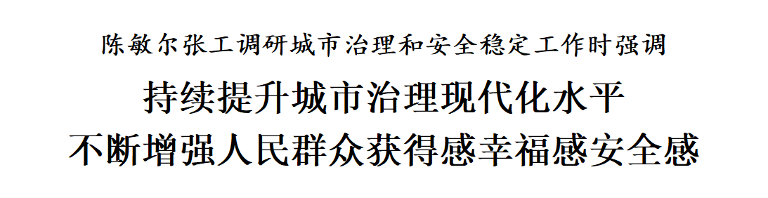 陳敏爾、張工在調(diào)研中強(qiáng)調(diào),要認(rèn)真學(xué)習(xí)貫徹習(xí)近平總書記在中央城市工作會(huì)議上的重要講話精神,深入落實(shí)習(xí)近平總書記視察天津重要講話精神,踐行人民城市理念,強(qiáng)化黨建引領(lǐng)基層治理創(chuàng)新,深化大城細(xì)管、大城智管、大城眾管,著力提升城市治理現(xiàn)代化水平,不斷增強(qiáng)人民群眾獲得感、幸福感、安全感。圍繞籌備上合組織峰會(huì),在周全安全上下功夫,強(qiáng)化問(wèn)題導(dǎo)向、目標(biāo)導(dǎo)向、結(jié)果導(dǎo)向,提升執(zhí)行力,把握時(shí)度效,落實(shí)工作方案,完善應(yīng)急預(yù)案,健全工作體系,優(yōu)化指揮調(diào)度機(jī)制,全鏈條推動(dòng)各項(xiàng)任務(wù)有序開展。堅(jiān)持點(diǎn)線面網(wǎng)相結(jié)合,抓好社會(huì)面整體防控,強(qiáng)化風(fēng)險(xiǎn)隱患源頭治理,建好管好用好綜治中心,發(fā)展壯大群防群治力量,加強(qiáng)網(wǎng)格化服務(wù)管理,深化矛盾糾紛多元化解,完善城市運(yùn)行保障和應(yīng)急管理體系,嚴(yán)格落實(shí)安全生產(chǎn)責(zé)任制,有力保障全市域、全時(shí)段、全要素安全。深化道路交通綜合治理,加強(qiáng)交通組織和疏導(dǎo),持續(xù)提升交通態(tài)勢(shì)感知力、交通擁堵疏解力、交通事件反應(yīng)力,確保道路交通安全暢通。提高信訪工作法治化水平,完善思路舉措,注重分類指導(dǎo),提升信訪干部的群眾工作能力、法律政策水平,增強(qiáng)信訪工作實(shí)效,更好維護(hù)群眾合法權(quán)益、服務(wù)全市工作大局。